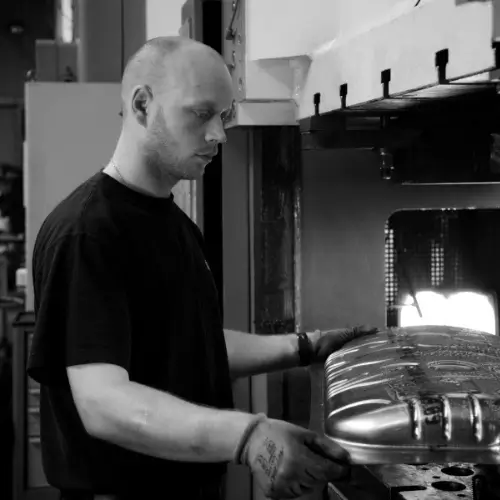Das Umformen zählt zu den zentralen Aufgaben bei der Herstellung unserer Kundenprodukte. Hierbei werden Blechzuschnitte in eine dreidimensionale Geometrie umgeformt. Hierfür stehen uns mehrere Fertigungsverfahren zur Verfügung, die wir passend zur Bauteilgeometrie und Stückzahl auswählen.