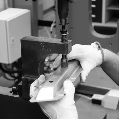 Im Bereich Montage stehen verschiedene Einpressmaschinen zur Verfügung, mit denen wir Normteile wie Nieten, Muttern oder Bolzen verarbeiten.